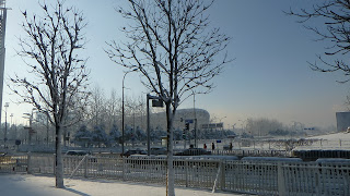 My hotel, which was linked to the convention center by a linked bridge ( thank God ) was next to the Bird Nest Stadium, near Olympic Park.